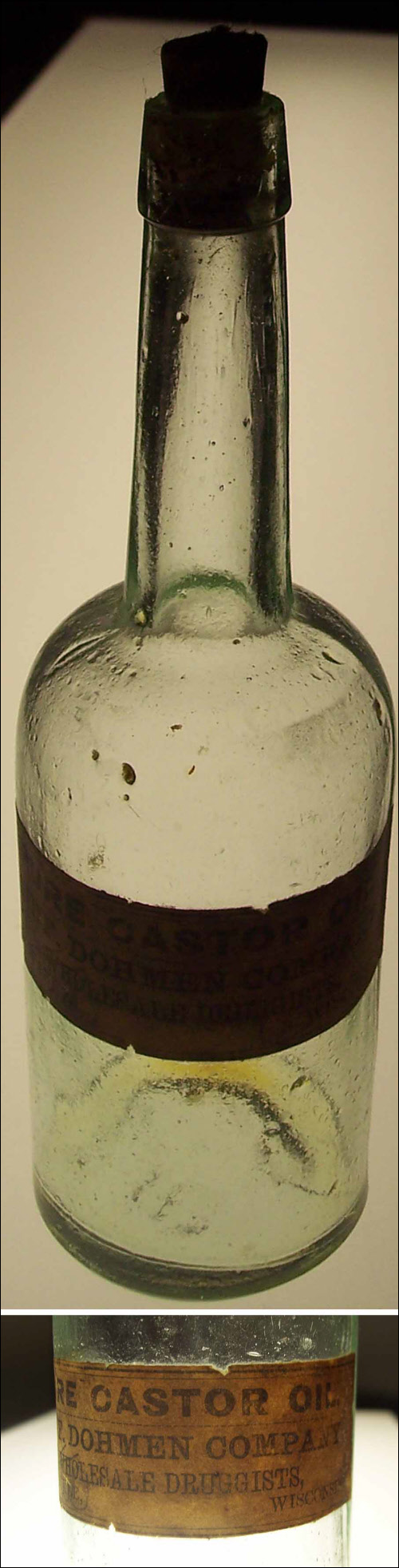 Label says "PURE CASTOR OIL F. DOHMAN COMPANY WHOLESALE DRUGGISTS MILWAUKEE WISCONSIN". There are very few pontil marked bottles from Wisconsin. This is a great example!