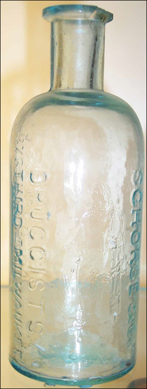 Early hinge mold, dating from the 1860's. Features a standing maiden embossed "SHORSE 375 THIRD ST. MILWAUKEE"